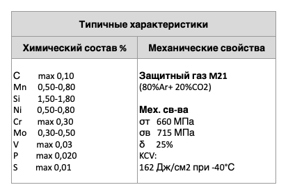 КЛАССИФИКАЦИЯ: Проволока EN ISO 16834-A: G Z Mn3NiMo AWS A5.28: ER100S-G Наплавленный металл EN ISO 16834-A: G 55 4 M Z21 Mn3NiMo