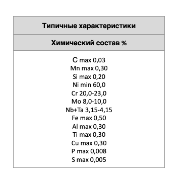 КЛАССИФИКАЦИЯ: EN ISO 18274: S Ni 6625 (NiCr22Mo9Nb) AWS A5.14: ERNiCrMo-3