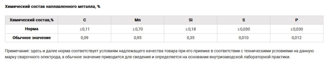 Особые свойства: Металл шва характеризуется высокой стойкостью к образованию кристаллизационных трещин и низким содержанием водорода. Электроды склонны к порообразованию при удлинении дуги и при сварке по окисленной поверхности.
