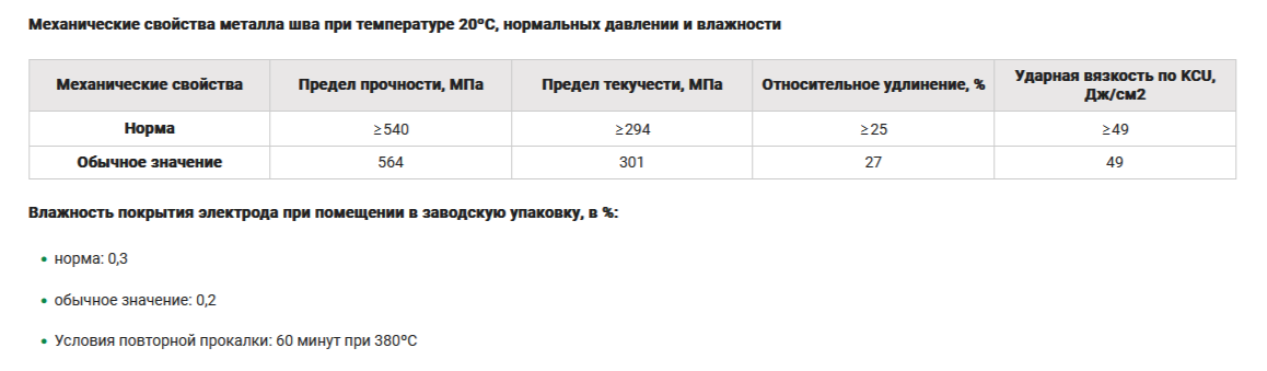 Характеристики плавления электродов: Производительность (для диаметра 4,0 мм) 10,5 г / (А·ч), 1,4 кг в час. Расход электродов на 1 кг наплавленного металла 1,7 кг.
