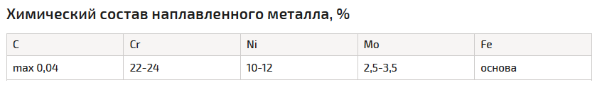 EN 14700: E Fe 11-200-cz (DIN 8555): E 8-UM 250 CKPR EN ISO 3581-A: E 23 12 2 R 52 AWS: E 309 Mo-26 Материал: ~1.4459