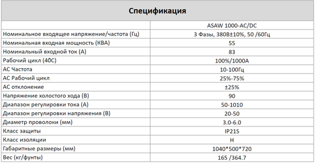 Серия ASAW-AC/DC использует технологию плавного переключения IGBT, обладает разумными статическими характеристиками и звуковыми динамическими характеристиками. Он может выполнять сварку углеродистой стали, нержавеющей стали, жаропрочной стали и легированной стали. Сварочный аппарат с постоянным/переменным током. Особенности и преимущества: - Мощная сварка пластин: сварка пластин толщиной более 3 мм - Процесс SAW: Однопроволочная, двухпроволочная одинарная дуга, электрошлаковая сварка, наплавка лентой, процесс наплавки видимой дугой; - Процесс строжки - 3-фазный источник питания - Несколько вариантов для трактора: сварочный трактор с толстой проволокой (3,0-6,0), двухпроволочный (1,6-2,4) сварочный трактор, трактор для угловой сварки, трехколесный трактор и трактор для сварки трубопроводов. - Конструкция управления для предотвращения опрокидывания трактора (защита от короткого замыкания сварочной проволоки с обрабатываемой деталью) - В блоке управления трактора хранится 10 наборов параметров; - Характеристики CC и CV - Процесс SAW: ток запуска дуги, время запуска дуги, скорость подачи проволоки, ток остановки дуги, напряжение остановки дуги, время остановки дуги и время обратного горения. - Подходит для использования с оборудованием автоматизации и тандемной системой - Управляемый выходной сигнал прямоугольной формы переменного тока (частота переменного тока, рабочий цикл, смещение тока) может контролировать глубину проплавления и скорость осаждения сварочного шва. - Интеллектуальная технология управления охлаждением; Экологичный дизайн - Технология плавного переключения полномостового инвертора, двойные параллельные инверторные схемы, 4 модуля IGBT, диодные модули быстрого восстановления - Защита от перегрева, перегрузки по току, перенапряжения и короткого замыкания на выходе; отображение кода ошибок.