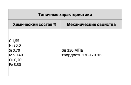 КЛАССИФИКАЦИЯ: EN ISO 1071: E C Ni-Cl (условно) AWS A5.15: ENi-Cl (условно)