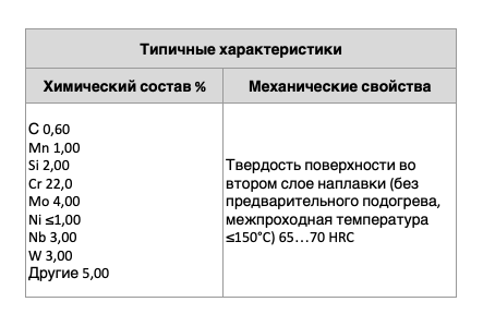 Механическая обрабатываемость наплавленного металла – только абразивом, стойкость к абразивному износу отличная, окалиностойкость отличная, коррозионная стойкость очень хорошая.