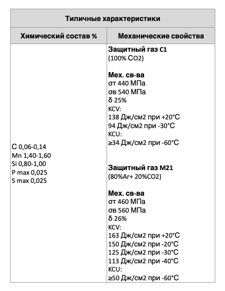КЛАССИФИКАЦИЯ: "Проволока EN ISO 14341-A: G 3Si1 AWS A5.18: ER70S-6 Наплавленный металл EN ISO 14341-A: G 38 3 C1 3Si1 EN ISO 14341-A: G 42 4 M21 3Si1 EN ISO 14341-A: G 42 4 M20 3Si1 ТУ 1227-005- 55224353-2004"