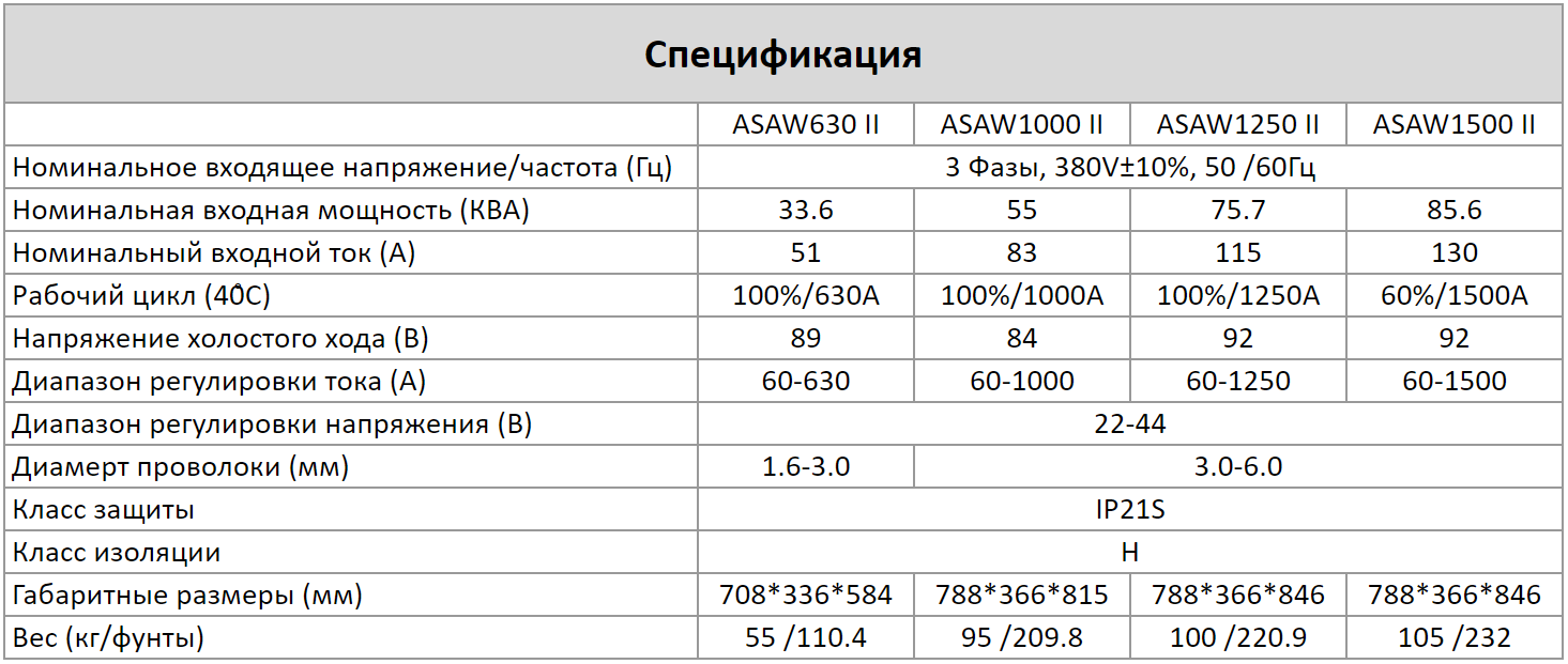 ASAW-II обеспечивает наилучшее применение для клиентов благодаря разнообразию сварки под флюсом, однопроволочной, двухпроволочной, тандемной системе, сварка лентой и многим другим различным решениям. Особенности и преимущества: - Мощная сварка пластин: сварка пластин толщиной более 3 мм - Процесс SAW: Однопроволочная, двухпроволочная одинарная дуга, электрошлаковая сварка, наплавка лентой, процесс наплавки видимой дугой; - Процесс строжки - 3-фазный источник питания - Несколько вариантов для трактора: сварочный трактор с толстой проволокой (3,0-6,0), двухпроволочный (1,6-2,4) сварочный трактор, трактор для угловой сварки, трехколесный трактор и трактор для сварки трубопроводов. - Конструкция управления для предотвращения опрокидывания трактора (защита от короткого замыкания сварочной проволоки с обрабатываемой деталью) - В блоке управления трактора хранится 10 наборов параметров; - Характеристики CC и CV; можно выбрать диаметр проволоки (1,2-5,0) - Процесс SAW: ток запуска дуги, время запуска дуги, скорость подачи проволоки, ток остановки дуги, напряжение остановки дуги, время остановки дуги и время обратного горения. - Процесс SMAW: регулировка силы дуги - Интеллектуальная технология управления охлаждением; Экологичный дизайн - Технология плавного переключения полномостового инвертора, двойные параллельные инверторные схемы, 4 модуля IGBT, диодные модули быстрого восстановления - Защита от перегрева, перегрузки по току, перенапряжения и короткого замыкания на выходе; отображение кода ошибки.